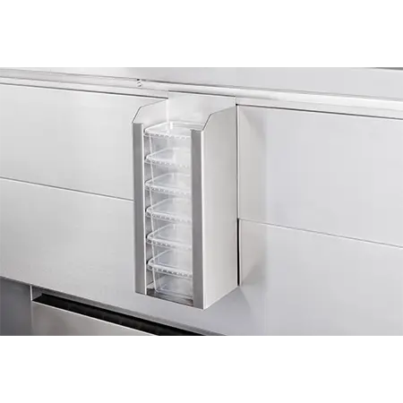 Holder for various types of bags, to be attached on the operator side of the counter. Available in 250 and 500mm.