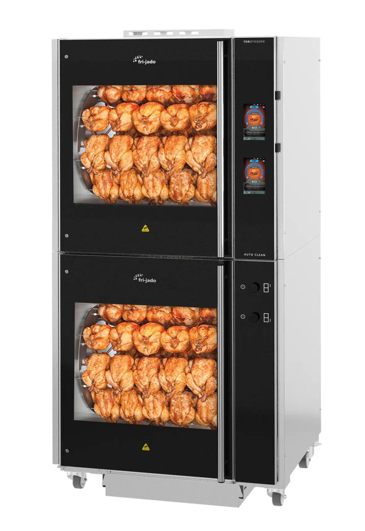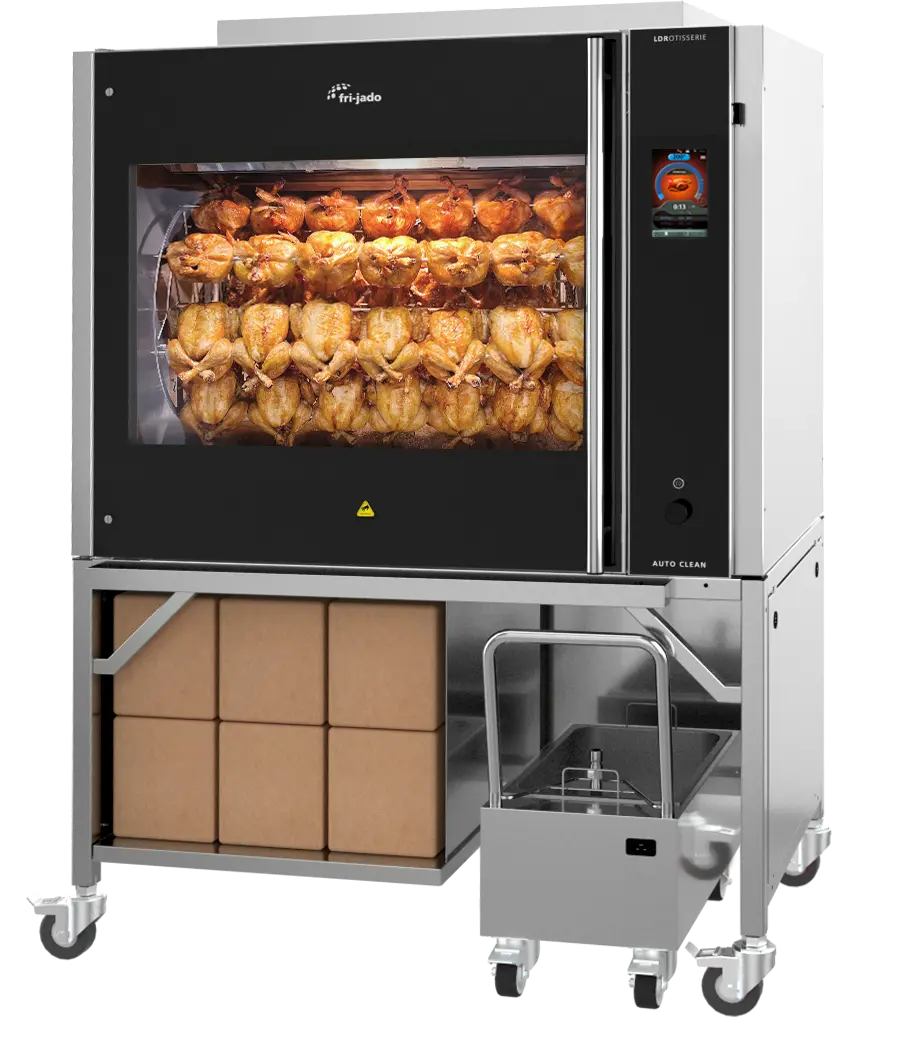 Cleaning a rotisserie can be a tedious and labor-intensive task. At Fri-Jado, we provide a range of rotisseries equipped with an automatic cleaning program designed to simplify this process. With our innovative cleaning system, you can conveniently clean your rotisserie overnight, freeing up valuable labor hours. This means you’ll have a pristine rotisserie ready for the next day of operation, ensuring efficiency and a spotless cooking environment.